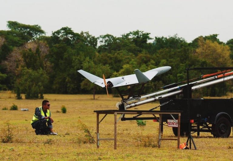 “โดรนพลีชีพ” (Kamikaze UAV) โดรนต้นแบบ อาวุธใหม่ ของกองทัพอากาศไทย เป็นอากาศยานไร้คนขับที่ออกแบบให้พุ่งเข้าโจมตีเป้าหมายและระเบิดตัวเองเมื่อชน เพื่อการโจมตีอย่างแม่นยำ , พัฒนาโดยคนไทย ความร่วมมือระหว่างโรงเรียนนายเรืออากาศนวมินทกษัตริยาธิราช กรมสรรพาวุธทหารอากาศ และ ศวอ.ทอ.